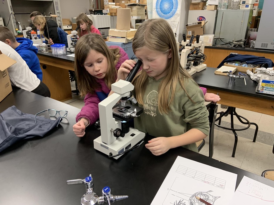 In one recent session, students learned how to properly use a compound light microscope, gaining skills in selecting magnification, focusing specimens, and adjusting the diaphragm to control light. Working in pairs, the group examined Daphnia, commonly known as water fleas—tiny crustaceans about the size of a BB that play a critical role in aquatic ecosystems as a primary food source for fish.
