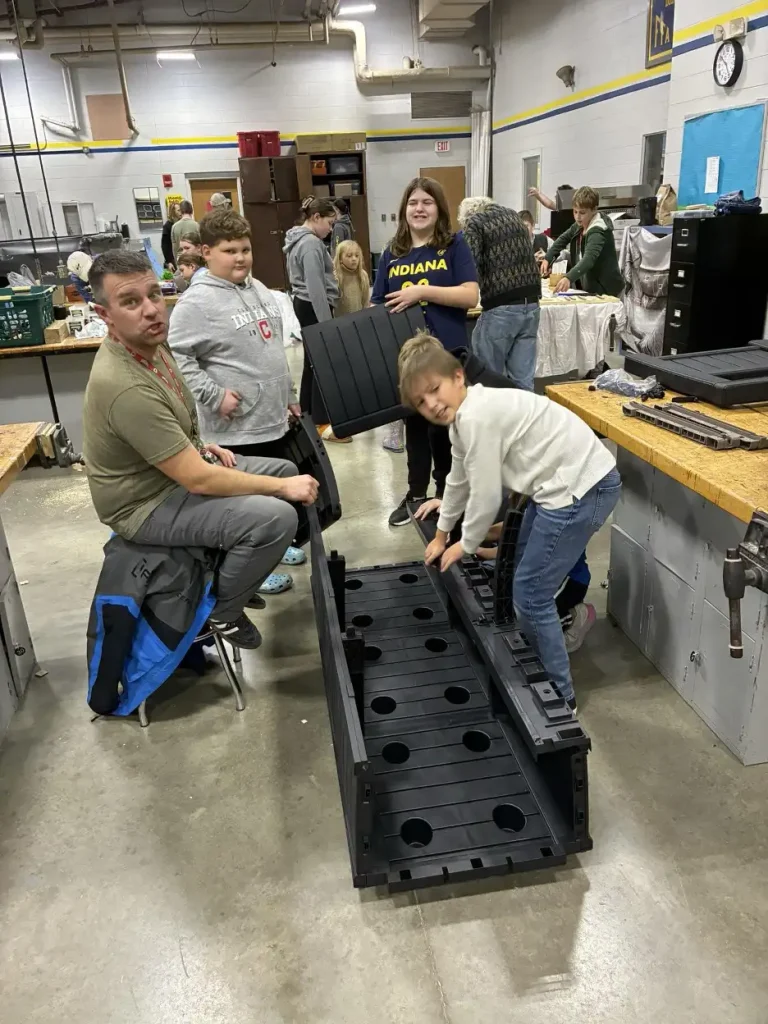 In the most recent ESC session, students put their mechanical and problem-solving skills to work. With guidance from instructors, the group assembled a rain barrel and a bench that will soon be installed near the elementary school garden.